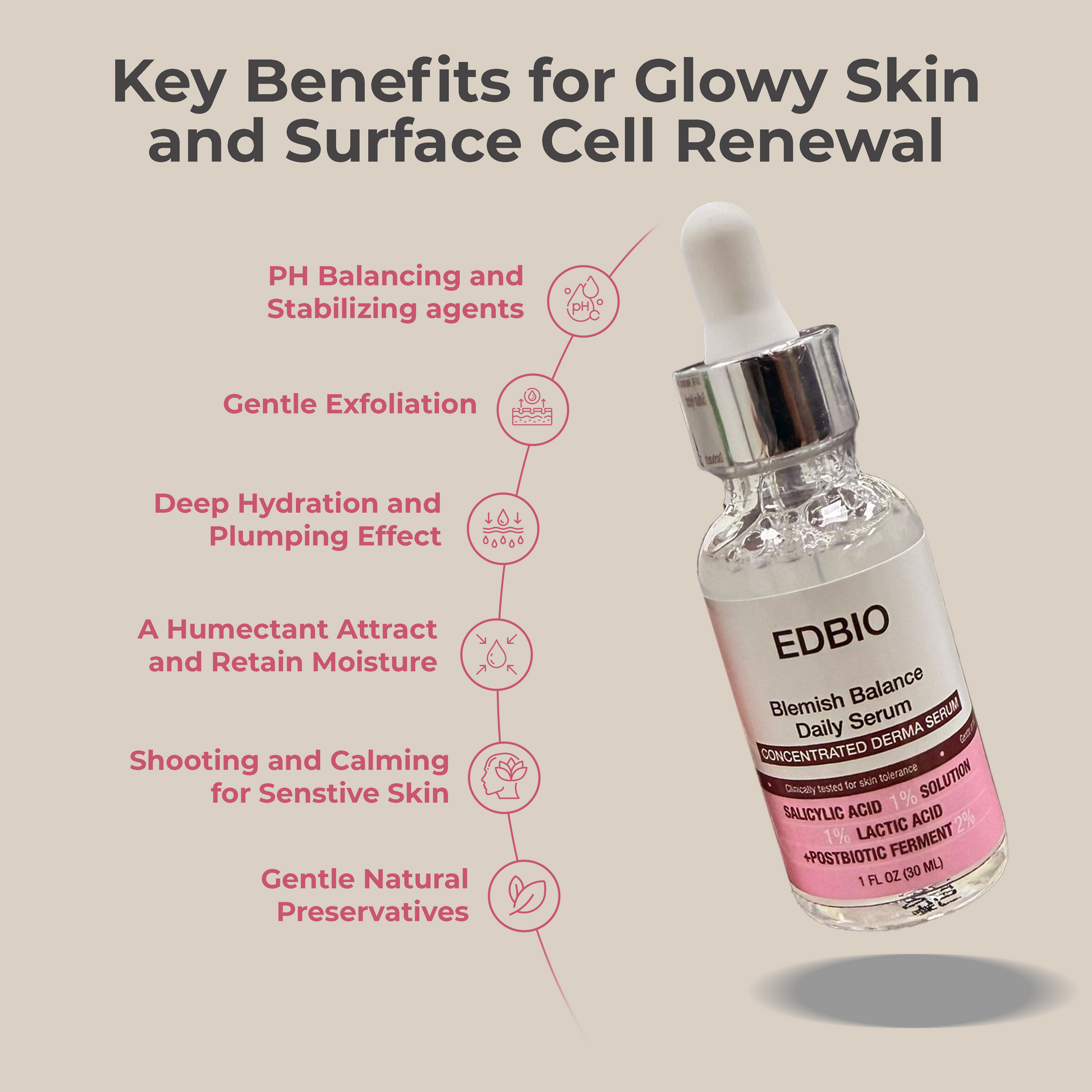 Key 6 Benefits for Glowy Skin and Surface Cell Renewal in 1 serum. This clinically tested and proven facial serum delivers